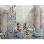 Nobakada's artistic process involves preparing paper with lace fabric and then painting on the prepared surface, creating a stippled effect that adds complexity to her figures. Her works are autobiographical, reflecting her own navigation of femininity and sensuality in a changing world. The women she paints are often from her immediate surroundings, capturing the beauty and femininity she observes.