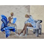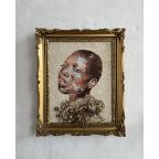 Buqaqawuli Nobakada (b. 2000, Western Cape) is an emerging contemporary mixed media artist who was introduced to Fine Art in Johannesburg at the beginning of her adolescence. Her primary medium is acrylic paint on laced paper, often incorporating custom clay and gold jewelry, which adds a layer of detail and dimensional to her works. Her art poignantly expresses the Black, female experience, exploring themes of femininity, identity, and the responsibility of taking up space.