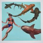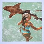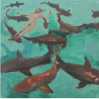 Clare Menck is a figurative painter specializing in oils. Her passion for painting figures in a landscape setting in or around water is further augmented with a line of self-portraiture often (but not always) swimming. The landscape (especially water) becomes a metaphor for a deeper meaning surrounding the human subjects that inhabit it as if they are players on a natural stage. The artist revels in summary subjects making bathers her focus; Clare is renowned for her delightful painterly treatment of light and colour especially when capturing swimmers in water.