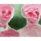 Gratrix’s provocative works are heavily imbued with a fun aesthetic and a sense of deprecating laughter. Extending from the grandeur and sacrosanct icons of traditional art canons, contemporary pop-culture and the artist herself, no social hierarchies are absolved as subjects. A thick, almost obscenely excessive application of oil paint forms the layers of make-up and decoration on her subjects’ faces and bodies. Portraiture is a favourite genre, explored primarily in painting, but also in drawing, printmaking, collage and assemblage.