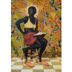 His works addresses political, religious, societal and daily humanity themes. His painting style is characterized with the use of Ankara fabrics, newsprint and an intense dark skin tones. his artworks can be found in the esteemed collection of the Virginia Museum of Fine Arts. He has participated in various exhibition and residency both locally and internationally including.