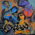 Getaw captures the complex web of human emotions and subconscious influences. His art invites viewers to navigate the blurred boundaries between lived experience and dreamlike reverie, offering a space where the dualities of reality and illusion coexist and interact. By exploring these themes, Getaw encourages deeper reflection on the ways in which our dreams and waking lives are intertwined. Kidane Getaw’s work is characterized by its introspective approach and ability to evoke the delicate dance between reality and fantasy, inviting audiences to explore the hidden depths of human experience.