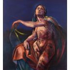 Colour startles in the new work. Dynamic, even confrontational, these paintings challenge our commonplace expectations of colour and shape. Local colour – the colour an object “owns” – has been replaced with saturated colour, more rooted in intuition than observation. Although embedded in the figurative, these works lean into more abstract realms. The tension between form and dissolution, between the need to structure composition and render dissipation, is what draws us in and holds our attention. Ballam references celebratory images of women by great modernists – Matisse’s dancers and Picasso’s women running on the beach. These are reworkings of artists who are key pillars of the male modernist canon. Are the Ballam paintings a homage, a challenge, or both? The roots in art history go back further, into classical friezes of Antiquity and their traditional themes like the Three Graces. Ballam’s entranced figures recall to mind the Pompeian mystery cults of which only fragments of murals remain.
