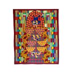 Sizwe Sama (b.1986) is a self-taught visual artist from Kwa-Zulu Natal, who learnt about art from his local library in Pietermaritzburg and from visiting the Tatham Art Gallery. The fabrics he uses in his tapestries are sometimes recycled from his own closet, or acquired for their specific visual impact and cultural references. The imitation tartans and Kente cloths used in these works draw attention to the intercultural translation of visual languages, and the ease with which cultural forms are appropriated and cross-pollinated in a globalised world.