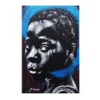Through monumental figures and evocative landscapes, he questions the paradoxical situation of being prisoners of our own riches. In this series, Mfuphi employs unconventional materials, such as old prison blankets donated by the Mpumalanga.
