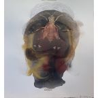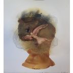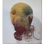 These themes are immediately apparent as one stares into Ann Gollifer's esoteric "Botswana-earth pigment" watercolor faces and ponders on how her choices of meduim speaks directly to the physical and emotional frailties of being human. Or as we try to discren why Modisa Motsomi "masks" the faces of his starkly portrayed figures with disorienting materials; faceless bodies full of emotion. And again, even without seeing any form, face or figure in Ngozi Chukura's threaded "Portal" studies, as we comtemplate the human-divinity connection alluded to in these orphic threaddaped canvases that channel Yoruba and Igbo "masquerades" and the practice of the prayer.