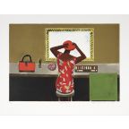 Afro I is a portrait of Nhlengethwa's youngest daughter (she is a nuclear engineer). For the print Afro II, Nhlengethwa collaged bits of text from a vintage hair-care advert found in a 1960s Ebony Magazine. In this series, the artist references his celebration of race, gender and class in Black African women's notions of their hair and styling and how they assert their identity and choice of crowns.